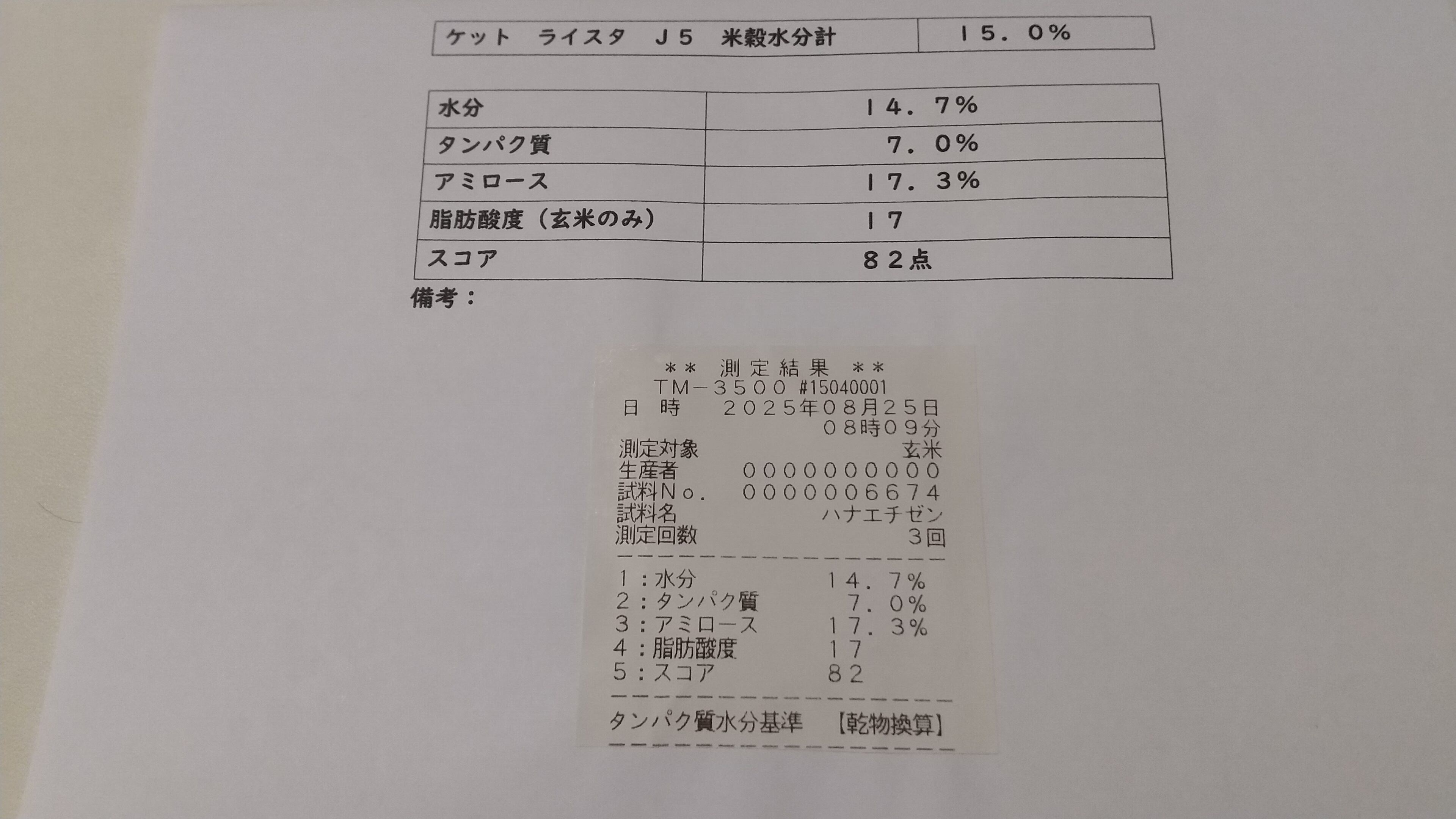 先日、食味分析を行った結果、100点満点中の82点でした。